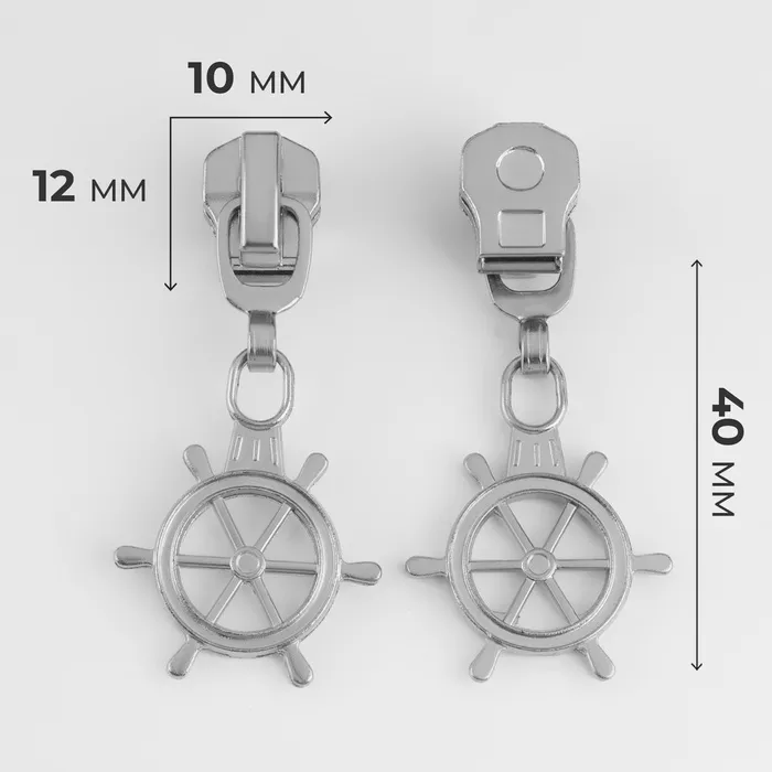 Бегунок для металлической молнии, №5, «Штурвал», 10 шт., цвет никель — Характеристики