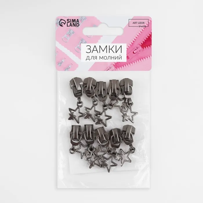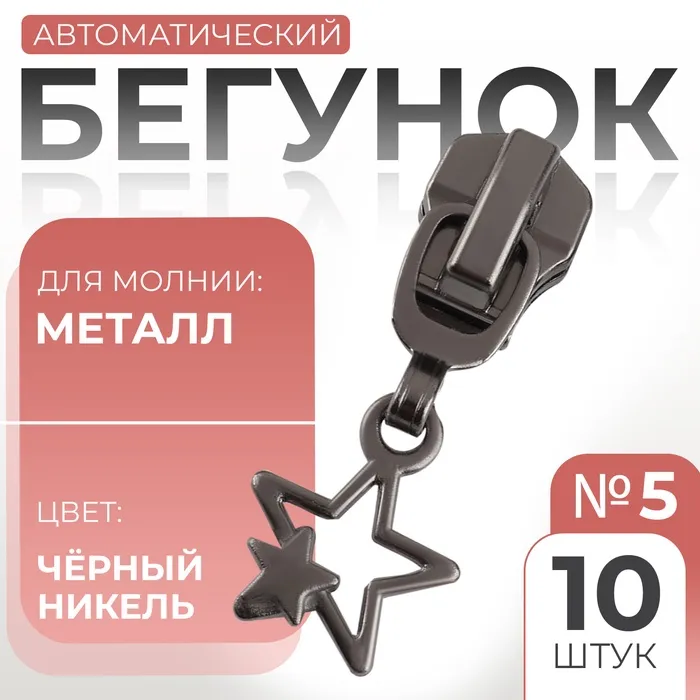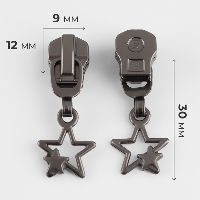 Бегунок для металлической молнии, №5, «Звёзды», 10 шт., цвет чёрный никель — Характеристики