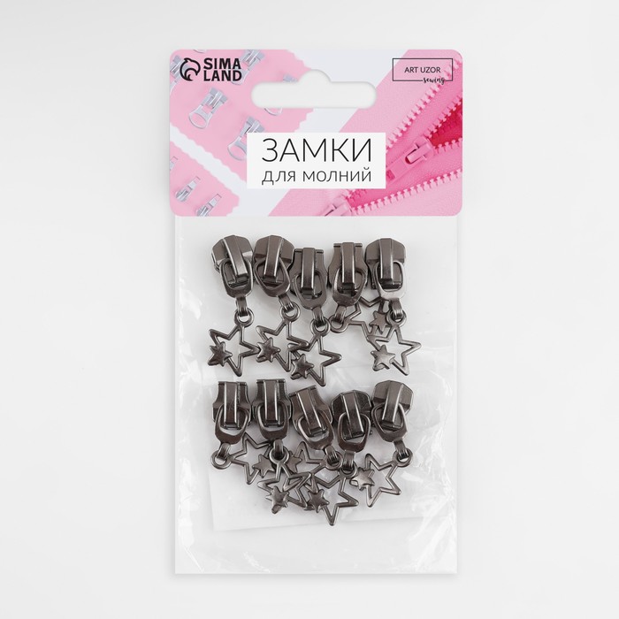 Бегунок для металлической молнии, №5, «Звёзды», 10 шт., цвет чёрный никель