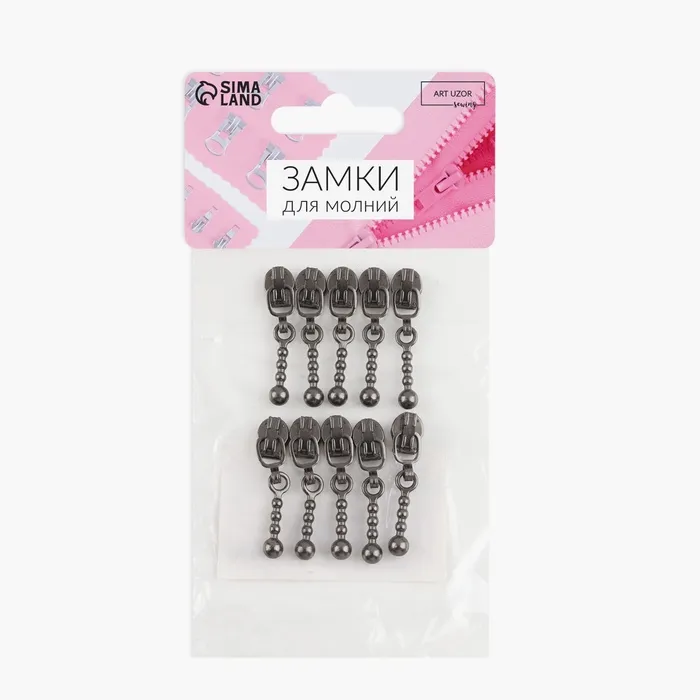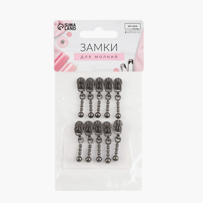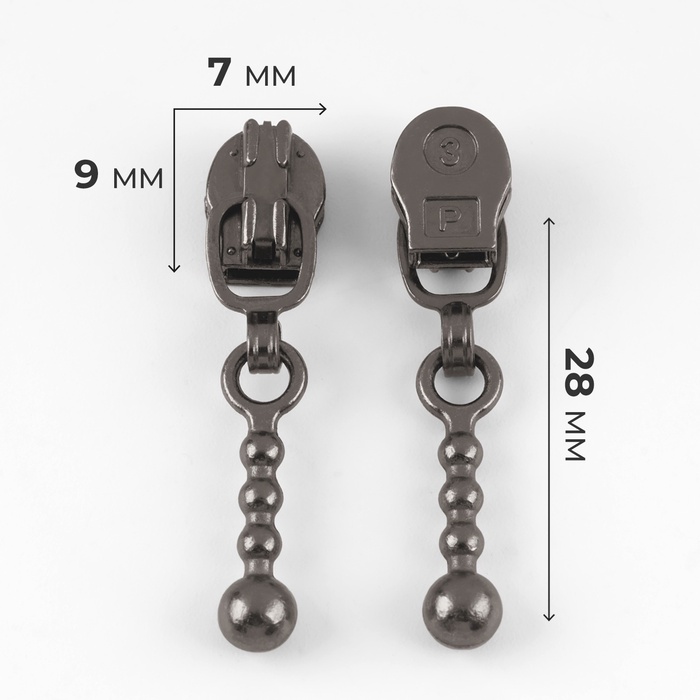 Бегунок для молнии «Спираль», №3, декоративный, 10 шт., цвет чёрный никель — Характеристики