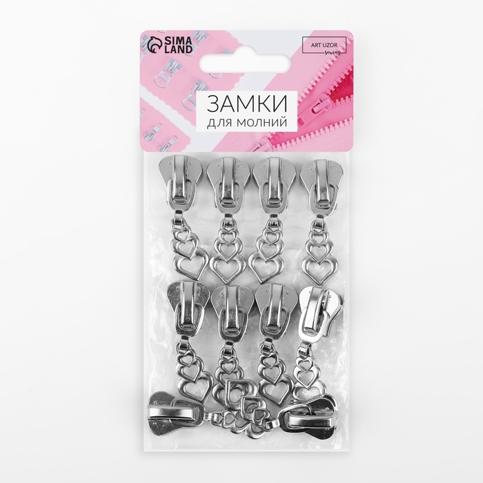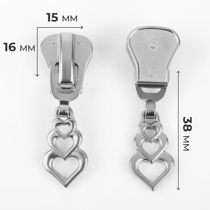 Бегунок для молнии «Трактор», №8, «Сердца», 10 шт., цвет никель — Характеристики