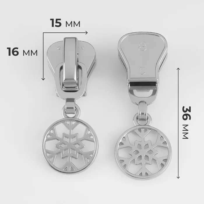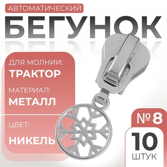 Бегунок для молнии «Трактор», №8, «Снежинка», 10 шт., цвет никель — Характеристики