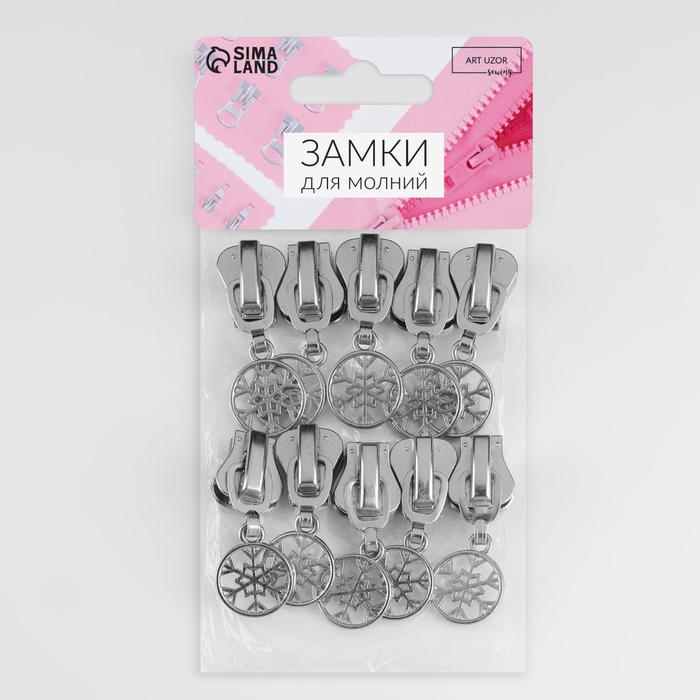 Бегунок для молнии «Трактор», №8, «Снежинка», 10 шт., цвет никель