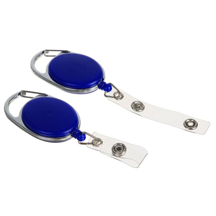 Карабин для бейджа, с держателем-рулеткой, на кнопке, синий