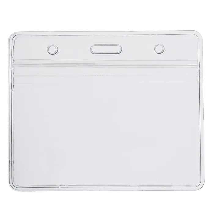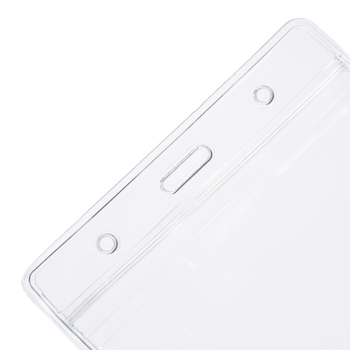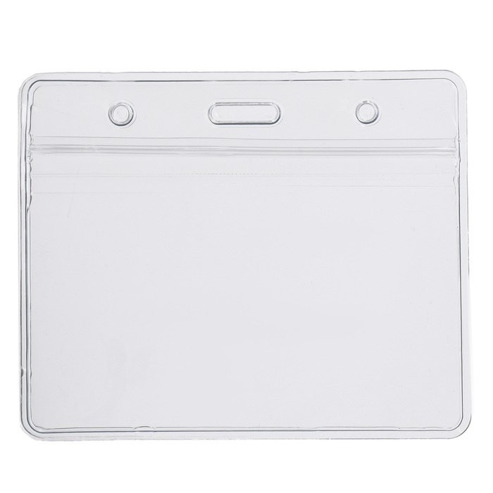 Бейдж горизонтальный. Материал бейджа - ПВХ, цвет - прозрачный. Имеет размер вставки 98х58 мм. Подходят для ношения именных карточек и пропусков.