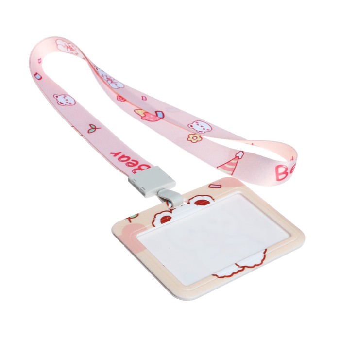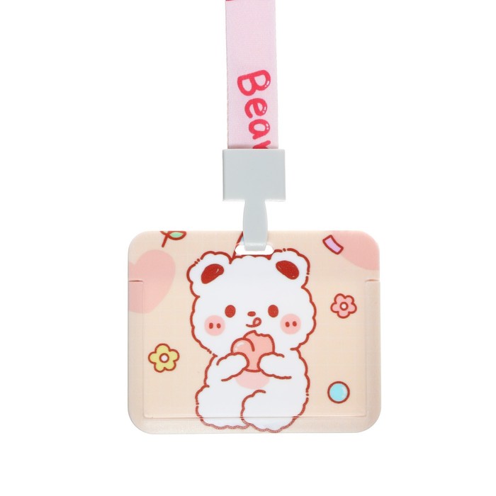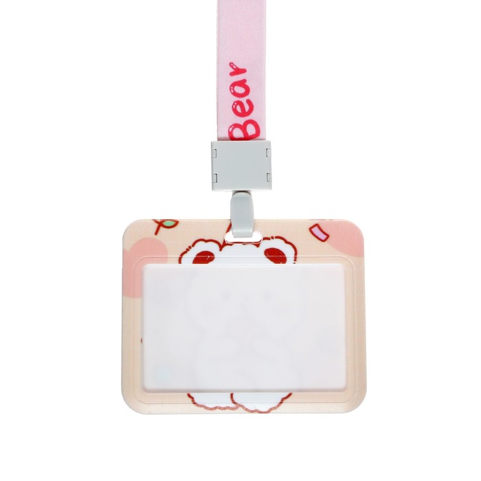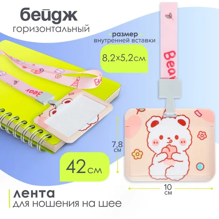 Бейдж горизонтальный Calligrata, «Мишка», внешний размер 100×78 мм, внутренний размер 52×82 мм, на ленте 42 см, пластик — Характеристики