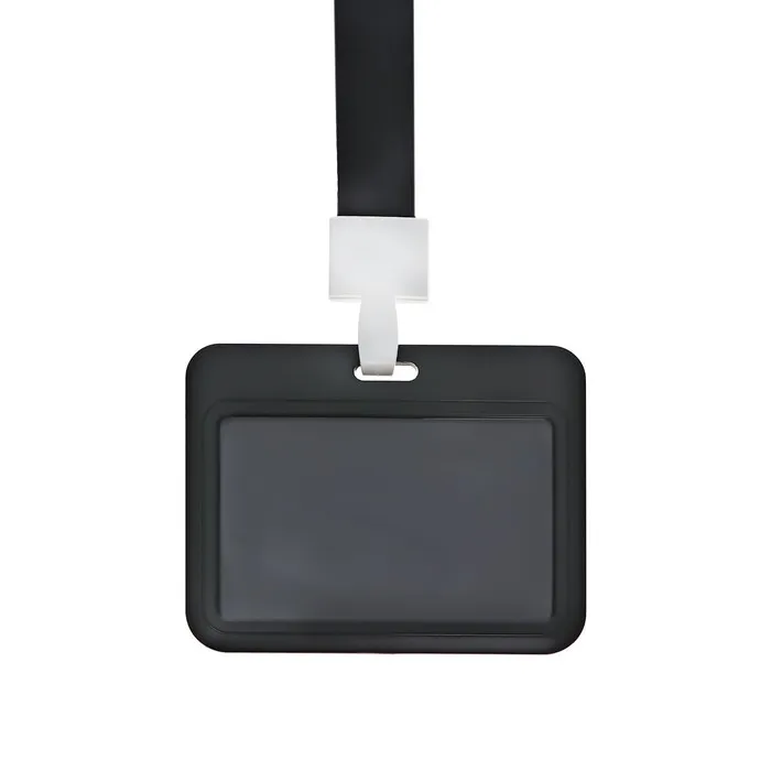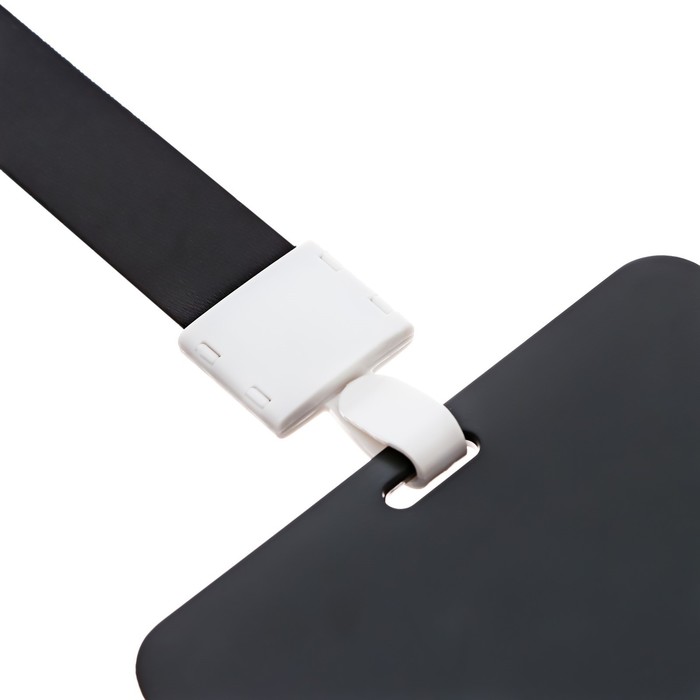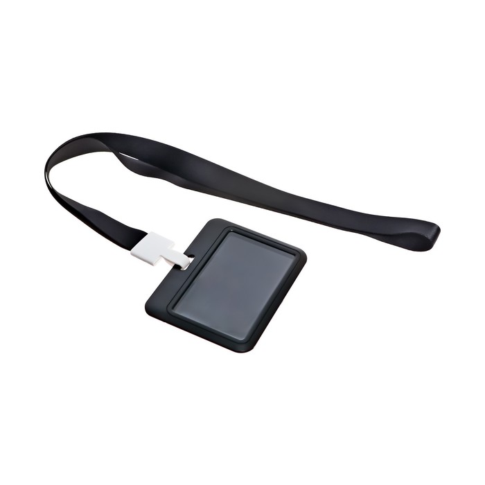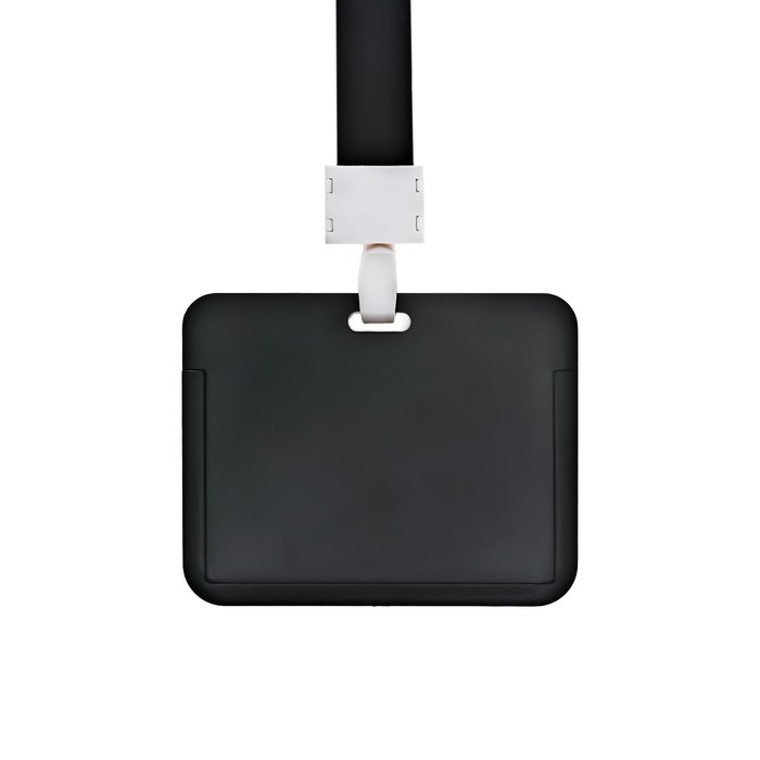 Бейдж горизонтальный, внешний, 100×80 мм, внутренний 52×82 мм, лента 42 см, Черный — Характеристики