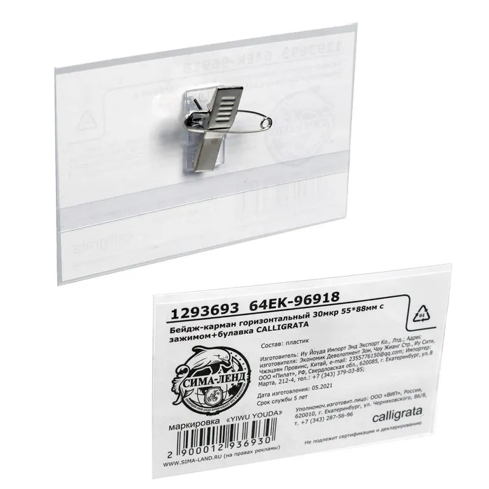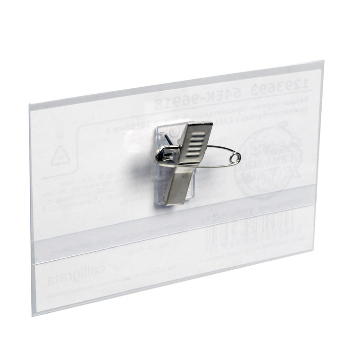Бейдж - карман Calligrata горизонтальный, 30 мкр, внешний размер 88×55 мм, внутренний размер 88×53 мм, с зажимом и булавкой — Характеристики