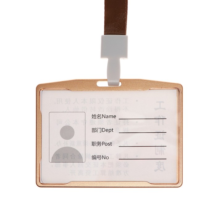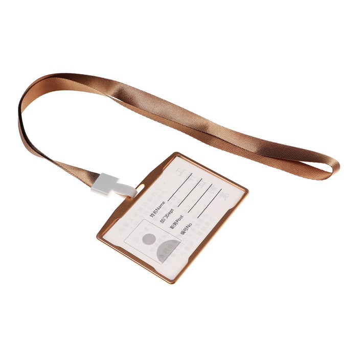 Бейдж - карман горизонтальный, внешний размер 105×78 мм, внутренний размер 97×66 мм, металл, золото, на ленте 40 см — Характеристики