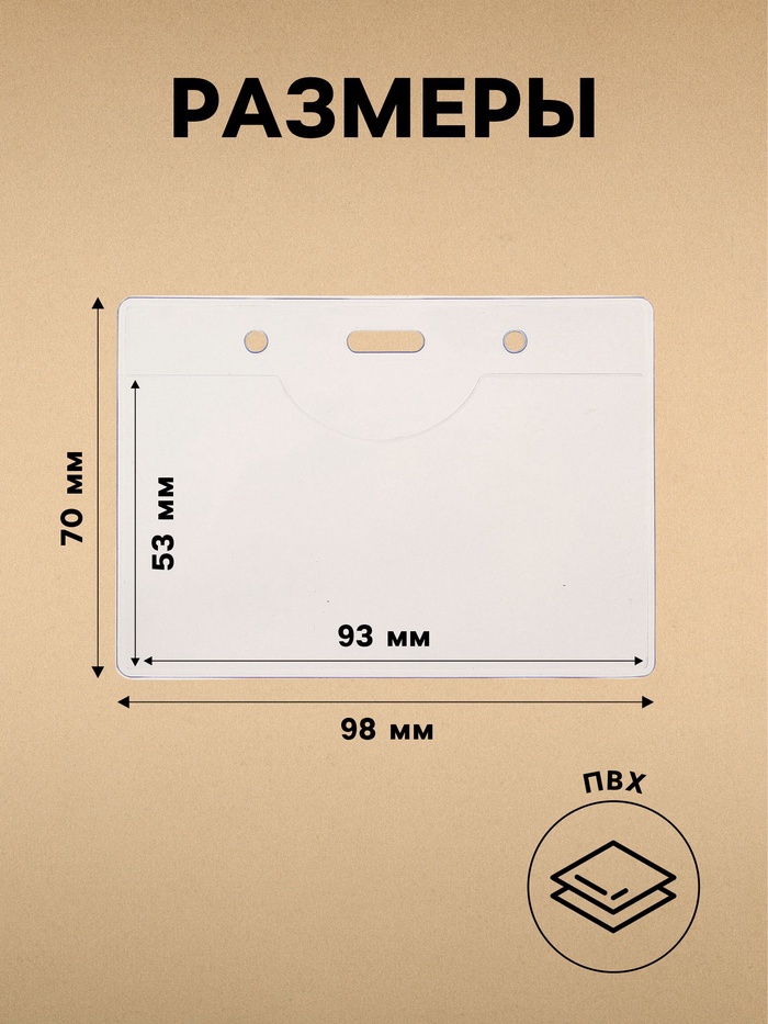 Бейдж - карман горизонтальный, внешний размер 98×70 мм, внутренний размер 93×53 мм, 20 мкр — Характеристики