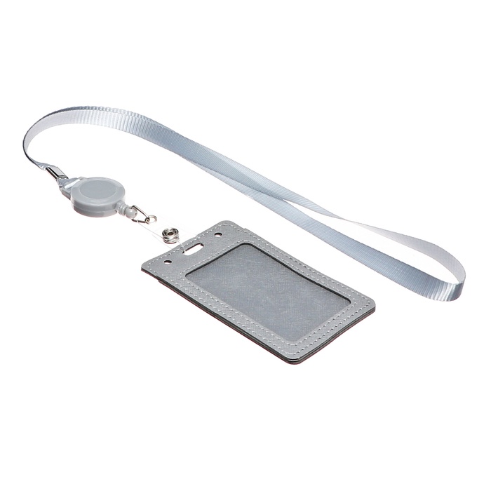 Размеры: - внешний размер: 110x68 мм - внутренний размер: 85x54 мм; (что соответствует стандартному размеру пластикового бейджа); Лента: длина 80 см, ширина 1,2 см (что позволяет удобно носить бейдж на шее); Цвет: серый.