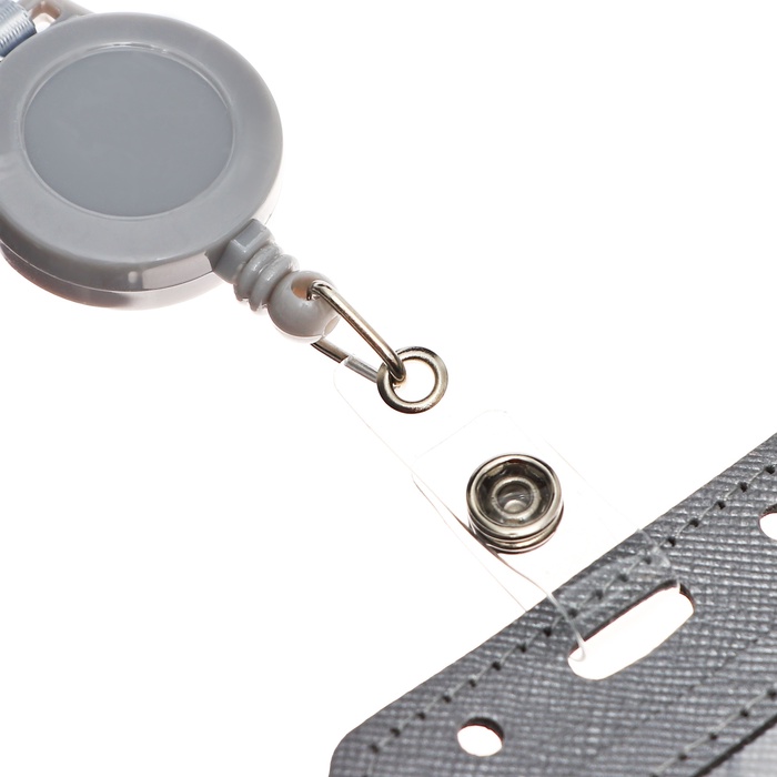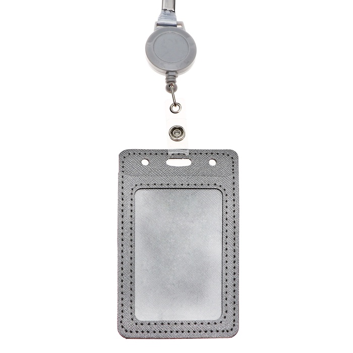 Бейдж - карман вертикальный кожзам, внешний размер 110×68 мм, внутренний размер 85×54 мм, лента 80×1.2 см, серый — Характеристики