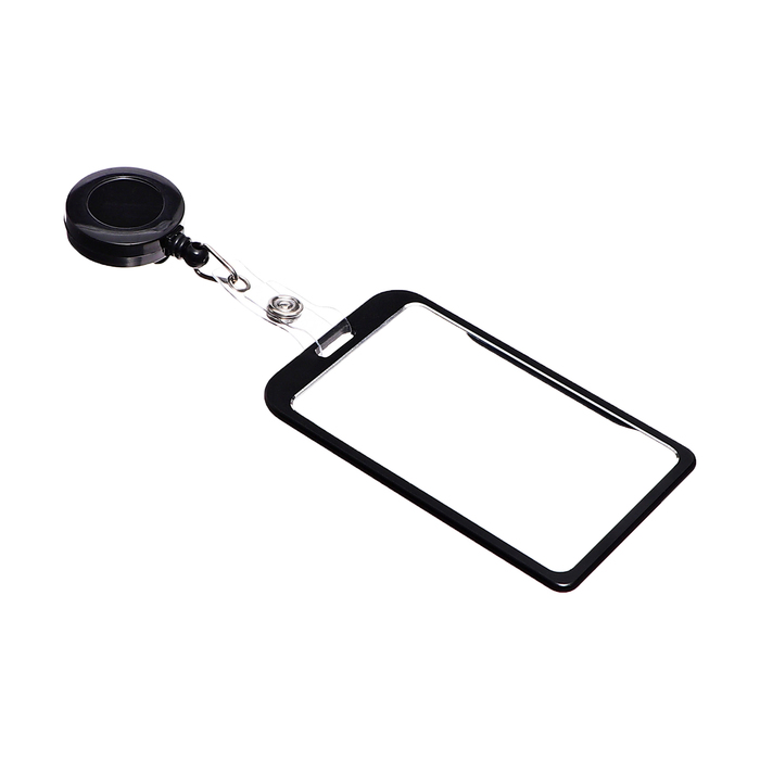 Бейдж-карман вертикальный внешний 96×56 мм, внут 85×54 мм, металл, черный, рулетка 40 см — Характеристики