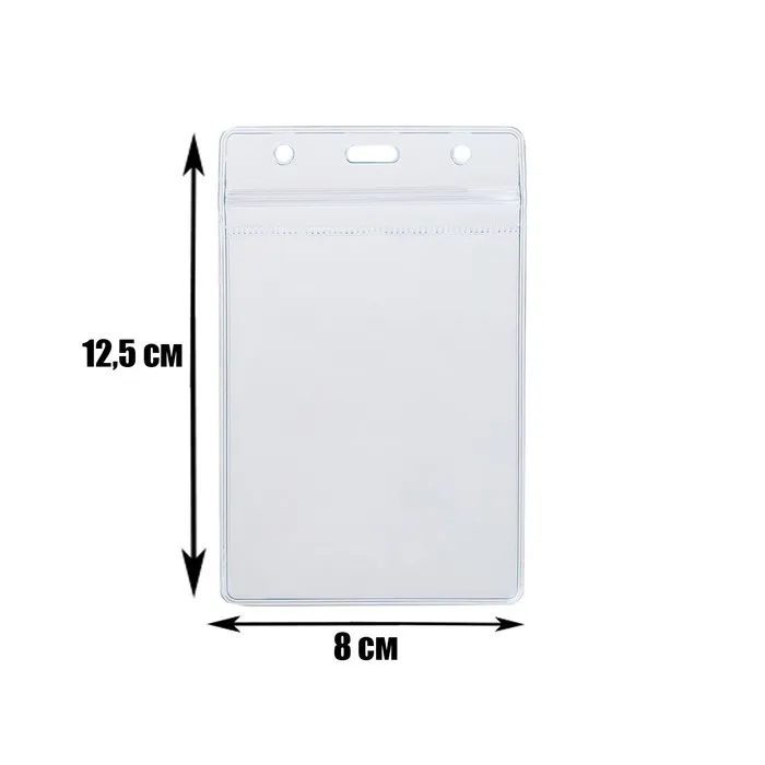 Прозрачный вертикальный бейдж с зип-защёлкой — удобное и практичное решение для мероприятий, офиса и учёбы. Выполнен из прочного пластика толщиной 350 мкм, устойчивого к деформации. Внутренний размер 74×100 мм позволяет легко разместить стандартную карточку, внешний 80×125 мм обеспечивает надёжную защиту от повреждений. Зип-защёлка плотно фиксирует вставку и защищает её от выпадения. Эргономичное отверстие для крепления подходит для шнурков, клипс и карабинов.