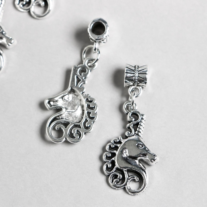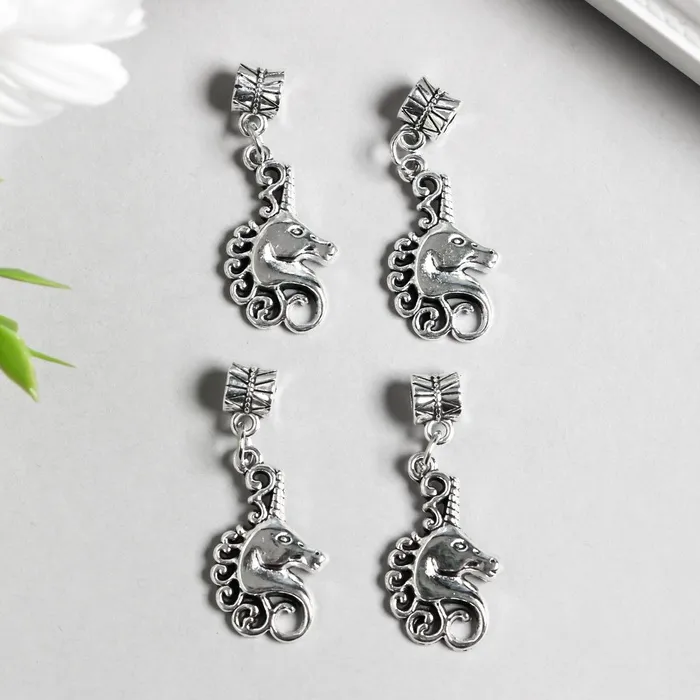 Бейл с подвеской металл для творчества «Голова единорога», серебро набор 4 шт., 3.6 см