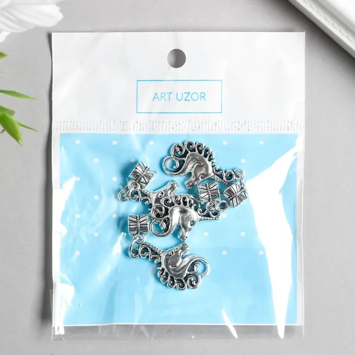 Бейл с подвеской металл для творчества «Голова единорога», серебро набор 4 шт., 3.6 см — Характеристики