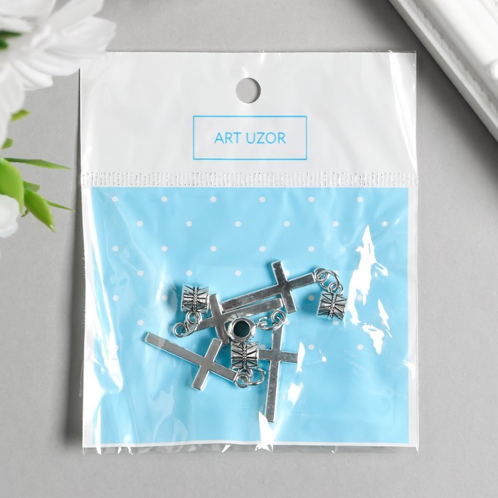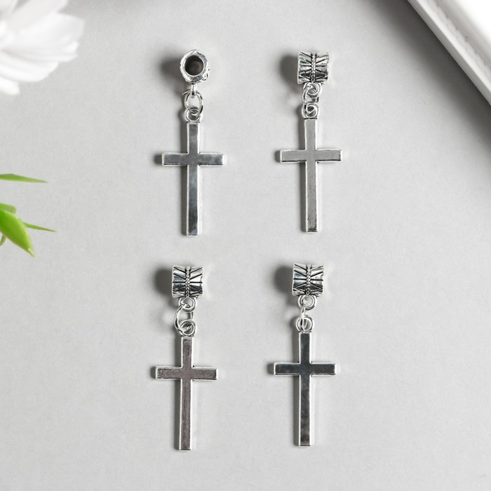 Бейл с подвеской металл для творчества «Крест», серебро, 3.5