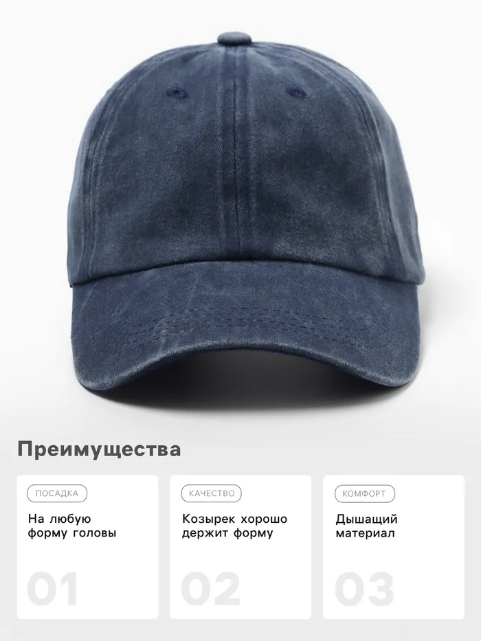 Бейсболка мужская однотонная MINAKU, размер 58, синяя — Характеристики