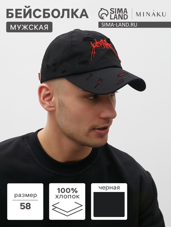 Бейсболка с порезами MINAKU, чёрная, размер 58 — Характеристики