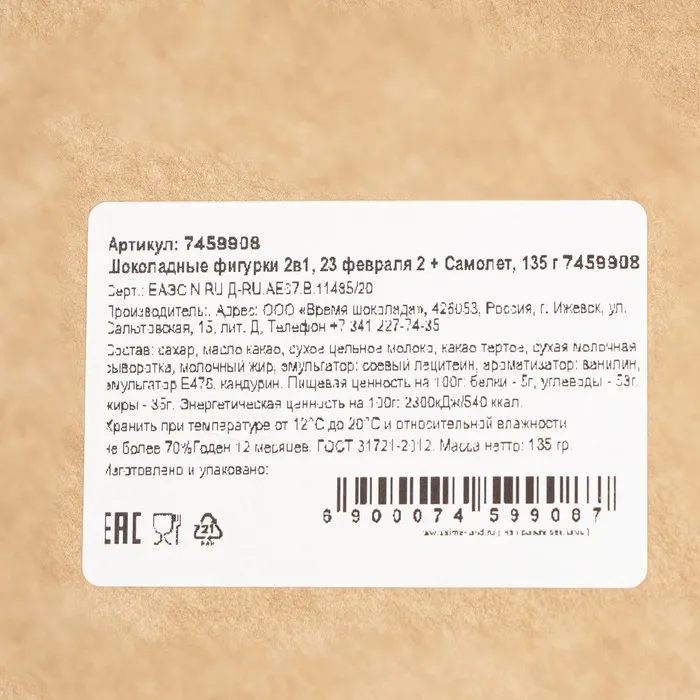 Бельгийский шоколад, 2 в 1 «23 февраля 2 + Самолет», 160 г — Характеристики