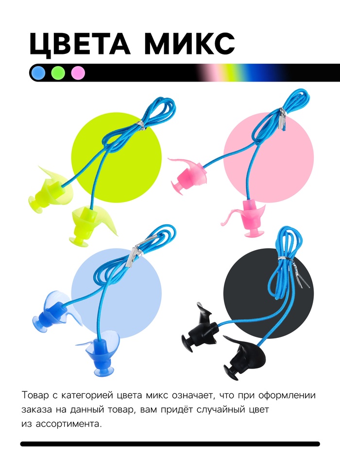 Беруши для плавания ONLYTOP с верёвочкой, цвета МИКС — Характеристики