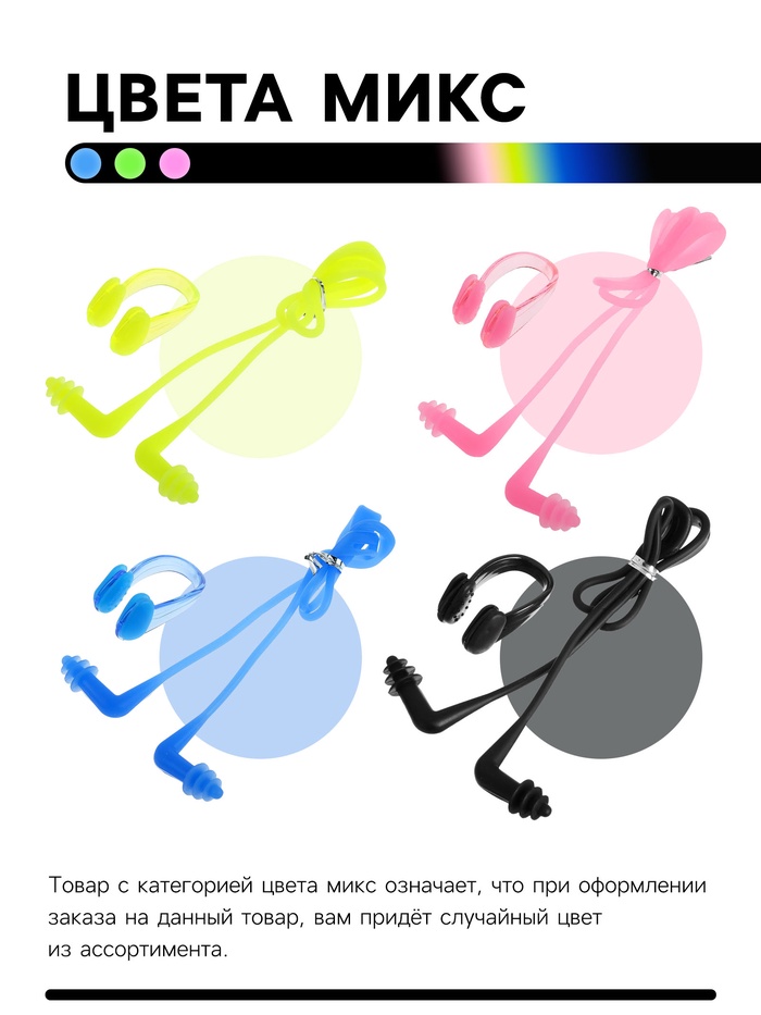 Беруши для плавания ONLYTOP, зажим для носа, цвета МИКС — Характеристики
