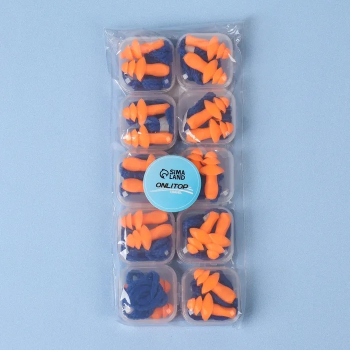 Беруши на шнурке, 3×1.7 см, в футляре, фасовка 10 пар, силиконовые, оранжевые — Характеристики