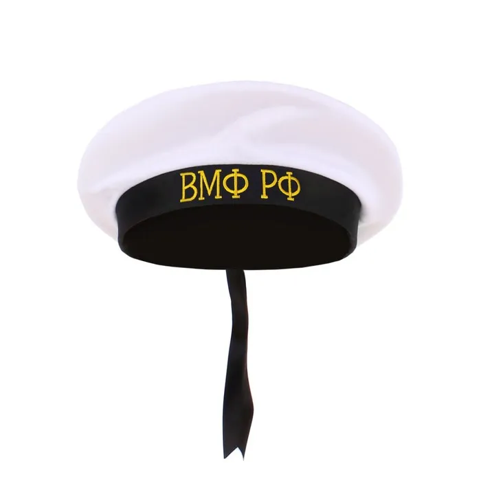 Такая бескозырка подойдёт для театрализованной тематической постановки. И, конечно, это незаменимый атрибут ко Дню Военно-Морского Флота, Дню Победы, 23 Февраля и многим другим военным праздникам. Почувствуйте себя покорителем водных далей, настоящей грозой морей!
