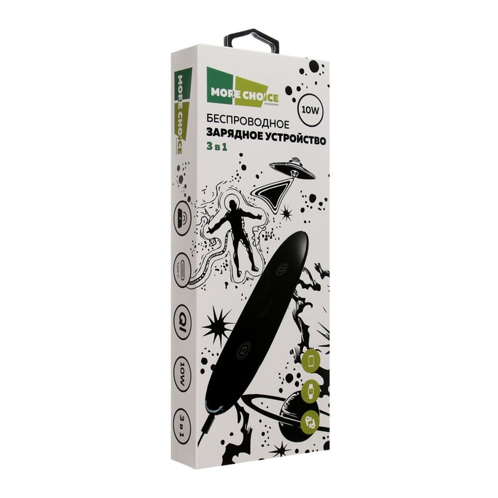 Беспроводное зарядное устройство More choice CW12, 2в1,10В, кабель Type-C,подсветка,черное — Характеристики