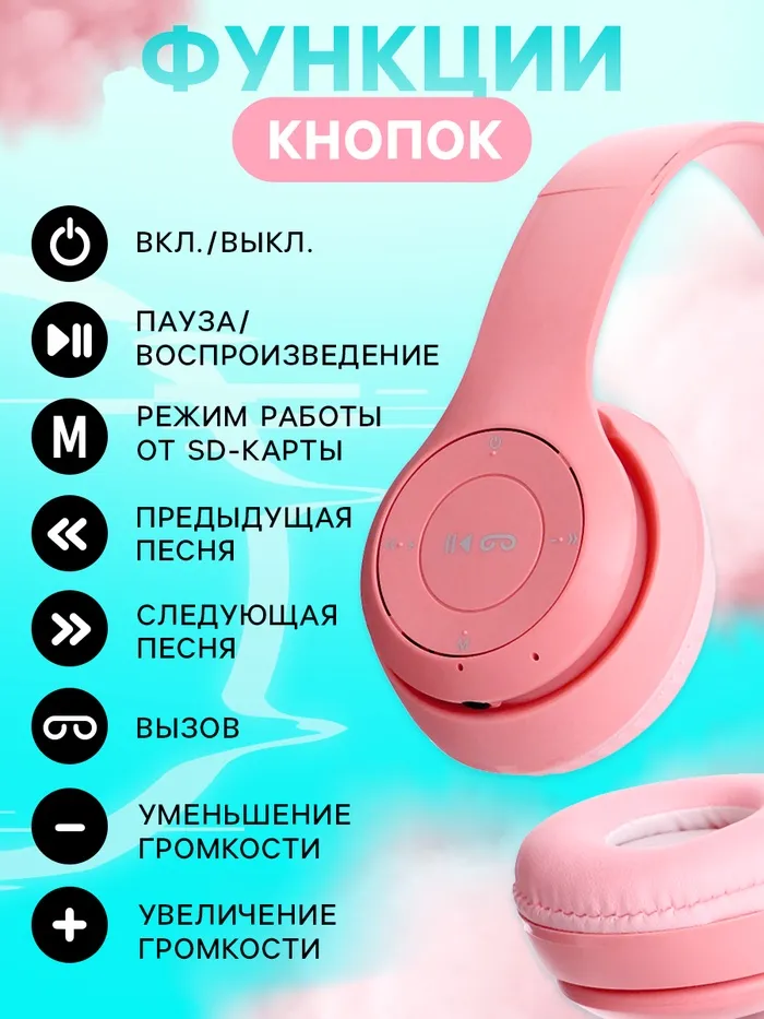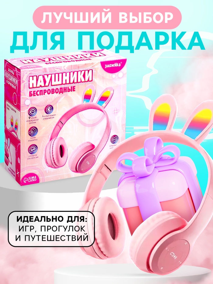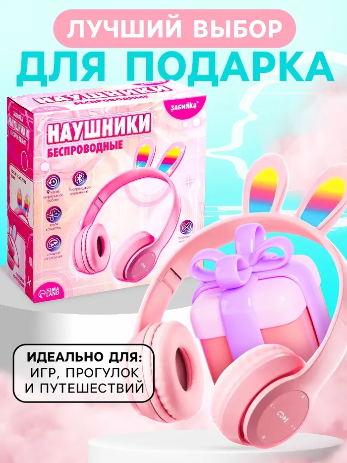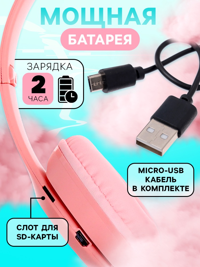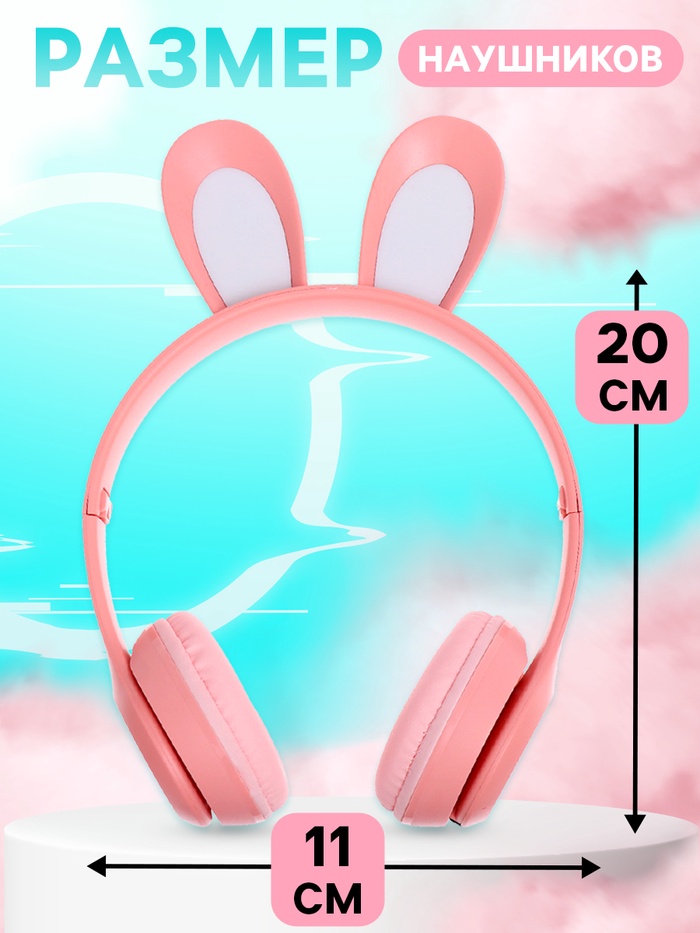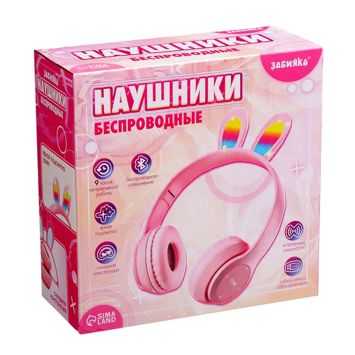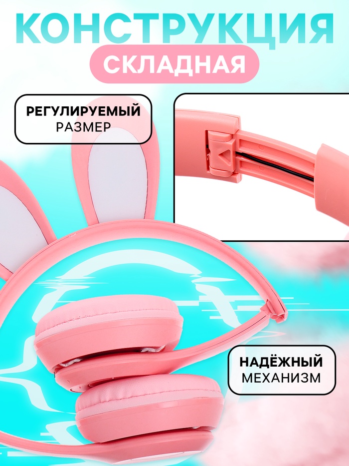 Беспроводные наушники «Зайчик», световые эффекты, складные, цвет розовый — Характеристики
