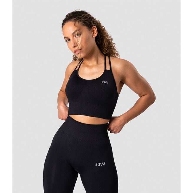 Широкая резинка внизу и эластичный материал удерживают спортивный бюстгальтер на месте и обеспечивают хорошую посадку. Стильные детали из ткани с логотипом ICIW на груди и спине. Перекрещивающаяся спинка и двойные бретели создают стильный и удобный дизайн.