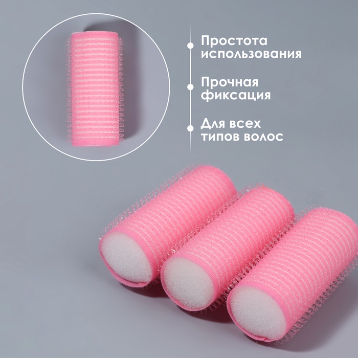 Бигуди «Липучка», d=2.5 см, 6 см, 6 шт., розовые