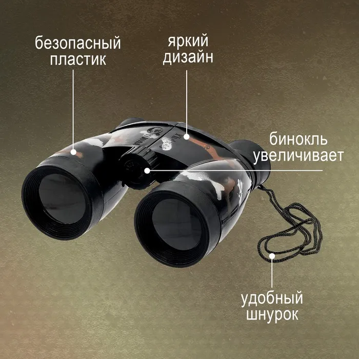 Бинокль «Миссия» — идеальное дополнение к детским играм на свежем воздухе. Он раскроет тайны окружающего мира и сделает каждую прогулку захватывающим путешествием. С биноклем ребёнок придумает самые разные игровые сюжеты: от исследования джунглей и космоса до миссий шпиона и поисков сокровищ.