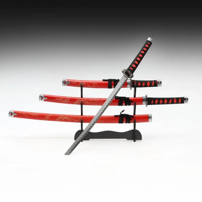 Макет оружия «Сувенирные катаны на подставке 3в1. Красный дракон», подарочный набор, ножны дерево, 54 см; 81 см; 100 см