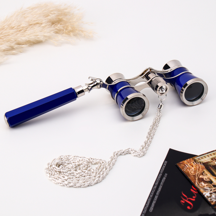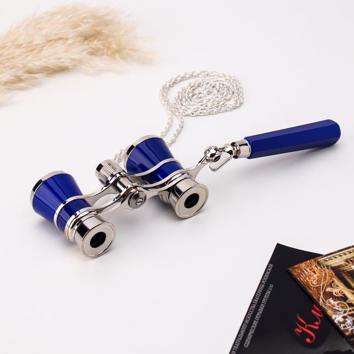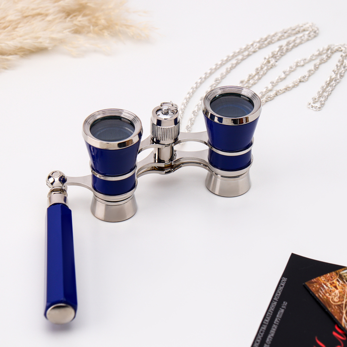 Бинокль театральный, телескопическая ручка, с цепочкой, синий