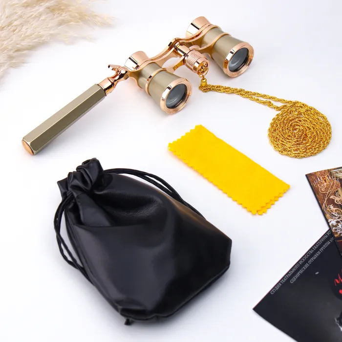 Бинокль театральный, телескопическая ручка, с цепочкой, золотистый — Характеристики