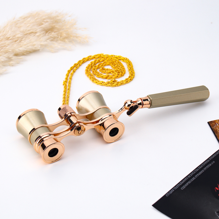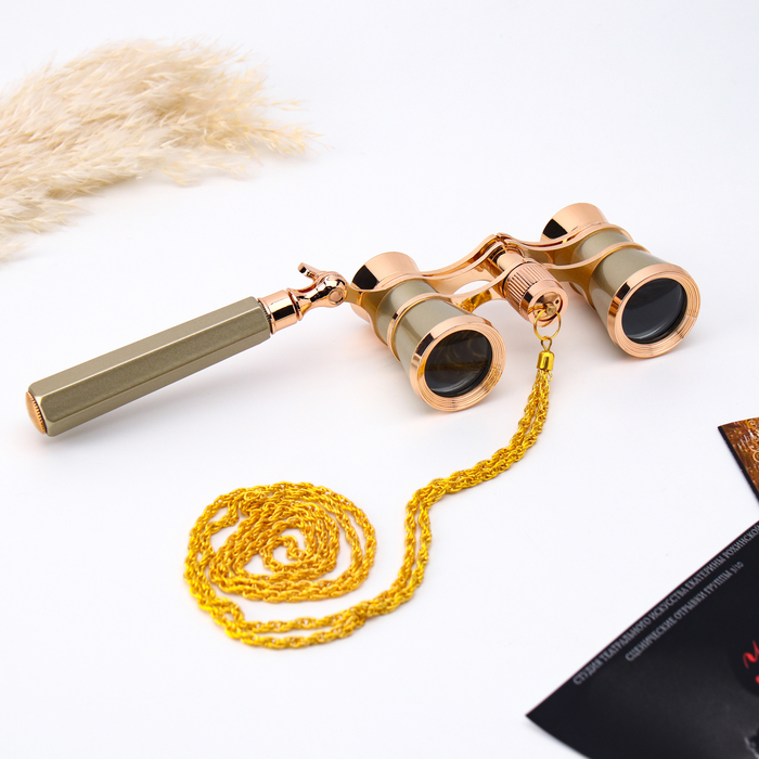 Бинокль театральный, телескопическая ручка, с цепочкой, золотистый