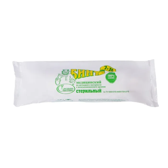 Марлевый стерильный бинт используют для закрепления повязок. Стерильные бинты подпрессовывают с краёв для того, чтобы предотвратить размотку в случае его выпадения из рук.