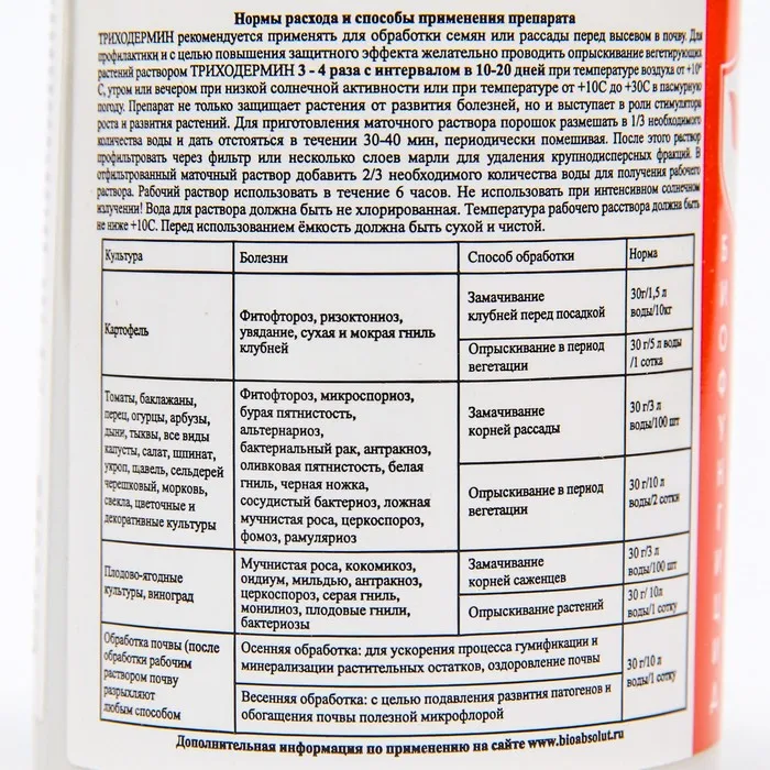 Триходермин - биопрепарат, предназначенный для защиты сельскохозяйственных растений от возбудителей патогенов, распространяющихся через почву и растительные остатки.