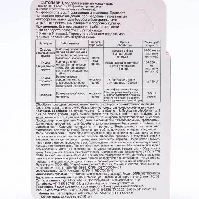 БИО фунгицид «Фитолавин», средство от бактериальных и грибных болезней растений,50 мл — Характеристики