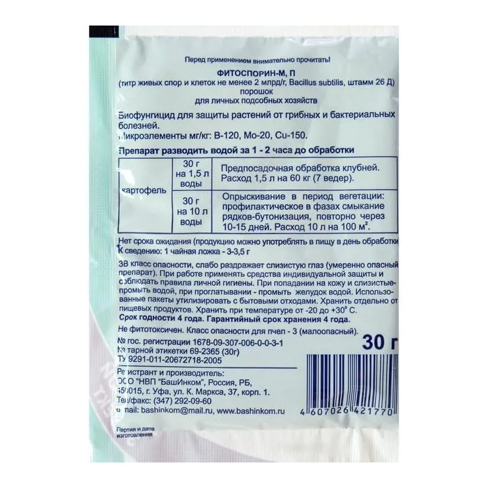 БИО фунгицид "Фитоспорин-М", от бактериальных и грибных болезней картофеля,30 г — Характеристики