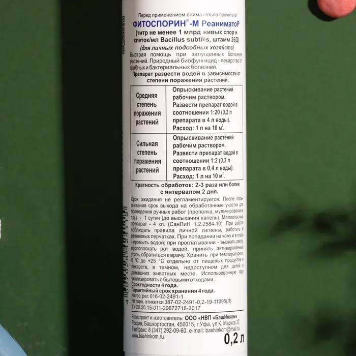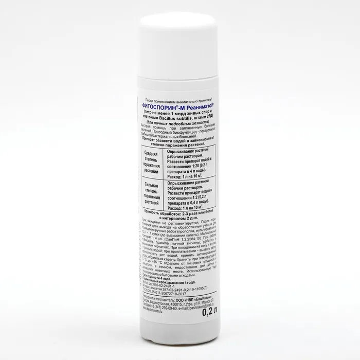 БИО фунгицид "Фитоспорин-М" Реаниматор, от бактериальных и грибных болезней растений, универсальный, 0.2 л — Характеристики