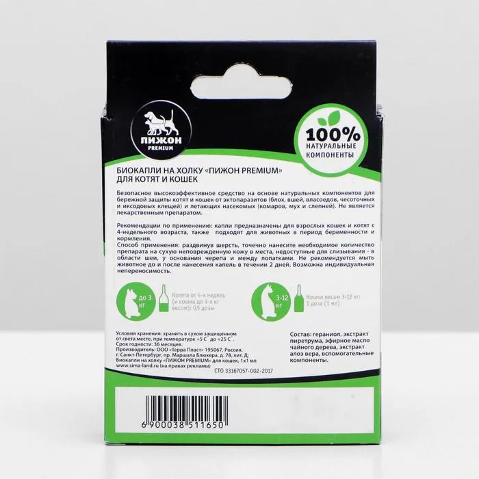 Безопасное высокоэффективное средство на основе натуральных компонентов для бережной защиты котят и кошек от эктопаразитов (блох, вшей, власоедов, чесоточных и иксодовых клещей) и летающих насекомых (комаров, мух и слепней).