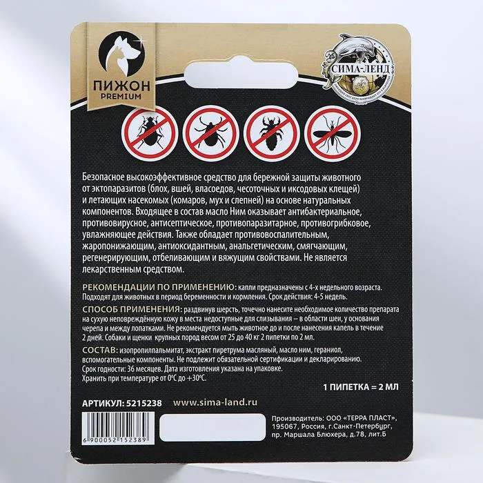 Это безопасное высокоэффективное средство для бережной защиты животного от эктопаразитов (блох, вшей, власоедов, чесоточных и иксодовых клещей) и летающих насекомых (комаров, мух и слепней) на основе натуральных компонентов.