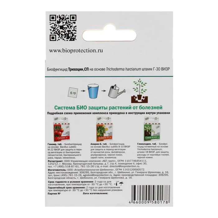 Биологический почвенный фунгицид на основе полезного почвенного гриба Trichoderma harzianum, штамм Г-30 ВИЗР.