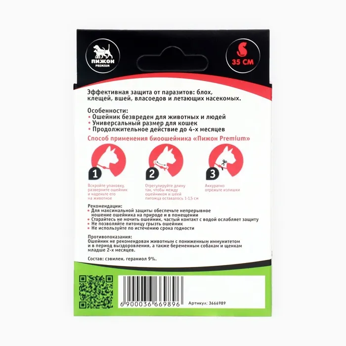 Биоошейник «Пижон Premium» предназначен для борьбы с блохами, клещами, вшами, власоедами, летающими насекомыми, а также для профилактики их появления.