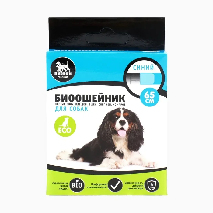 Биоошейник от паразитов "Пижон Premium" для собак, синий, 65 см — Характеристики