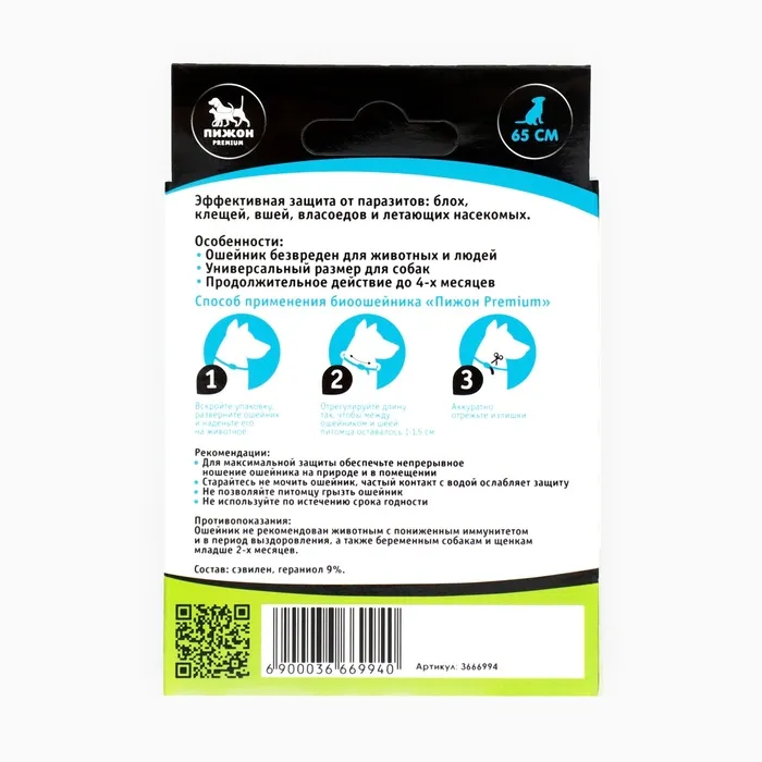 Биоошейник «Пижон Premium» предназначен для борьбы с блохами, клещами, вшами, власоедами, летающими насекомыми, а также для профилактики их появления.