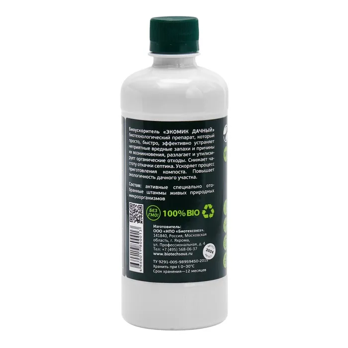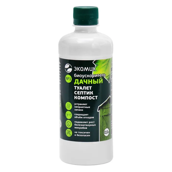 Биоускоритель Экомик дачный - биотехнологический препарат, который просто, быстро и эффективно устраняет неприятные вредные запахи и причины их возникновения, разлагает и утилизирует органические отходы. Ускоряет процесс приготовления компоста. Повышает экологичность дачного участка. Улучшает работу индивидуальных очистных сооружений.