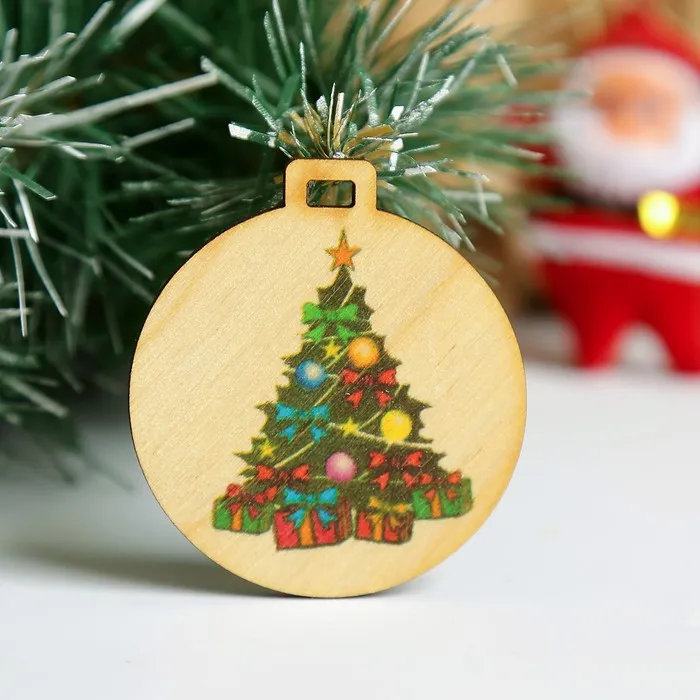 Крошечный круг из дерева диаметром 5 см превращается в волшебный новогодний аксессуар благодаря искусной УФ-печати с изображением праздничной ёлочки. Эта миниатюрная бирка — заготовка для сотни творческих идей, где природная фактура дерева гармонично сочетается с яркими праздничными красками.